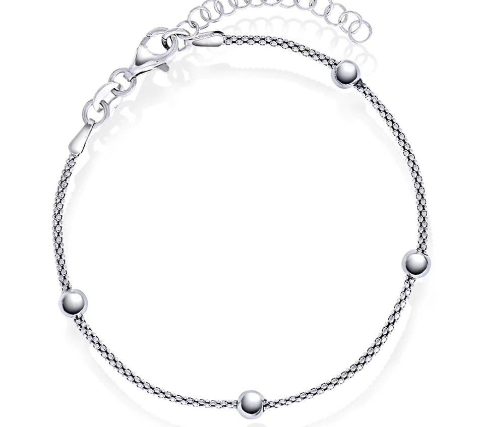 Armbånd i forgylt sølv med kuler. Armbåndet finnes også i sølv og rhodinert.