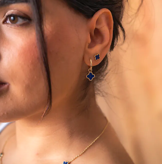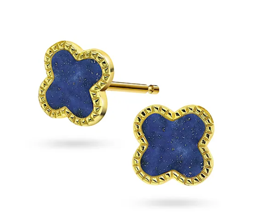 Kløver øredobber i 925 forgylt sølv med havblå lapis lazuli er trendy og lekne øredobber som setter preg på antrekket ditt!