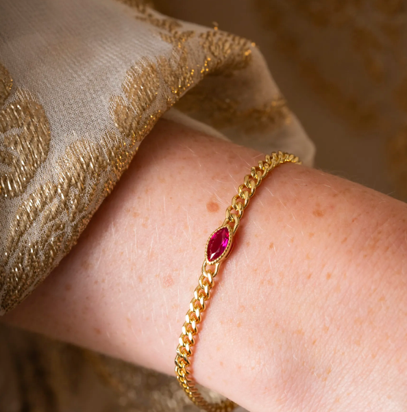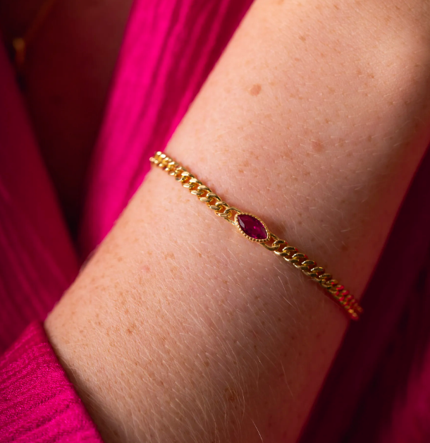 Klassisk armbånd i 925 forgylt sølv med en rosa zirkonia sentersten som prikken over i’en. Armbåndet har en forlenger på 3 cm som gjør at det passer de fleste. Finnes i flere farger.