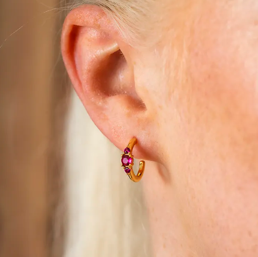 Tidløse creoler fra Pan Jewelry sin GLAM kolleksjon i forgylt 925 sølv, med 3 glitrende rosa zirkonia stener. Perfekt til både hverdag og fest!