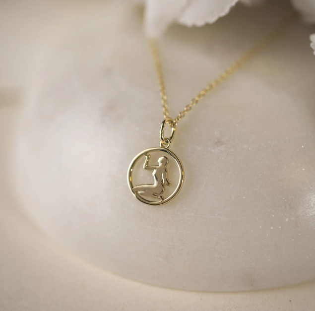 Stjernetegn smykke med jomfruen i 925 forgylt sølv. Jomfruen assosieres med presisjon, visdom og indre ro. Perfekt som gave til deg selv eller noen du er glad