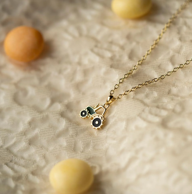 Sjarmerende smykke i forgylt 925 sølv med et populært traktoranheng, perfekt for små traktorentusiaster. En flott gaveidé til dåp, navnedag, bursdag eller jul.