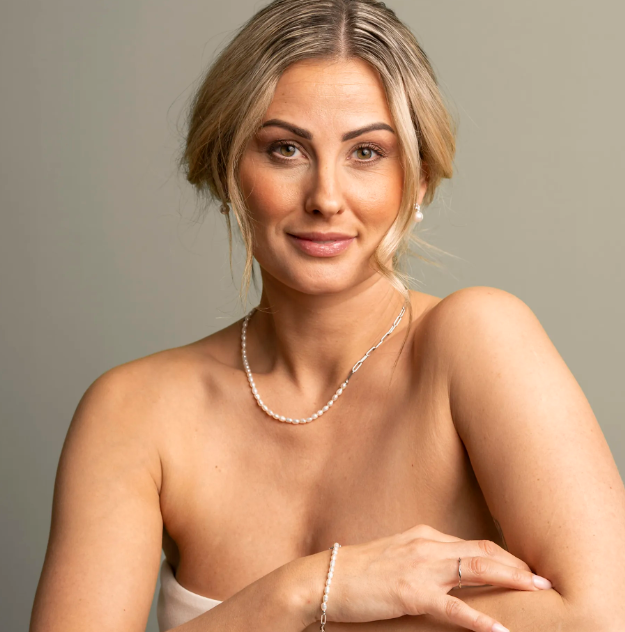 Vakkert smykke i sølv med ferskvannsperler. Et tidløst smykke som passer til begivenheter med stor symbolsk verdi – som bryllup og konfirmasjon, men også til hverdags. Kommer også med tilhørende armbånd og øreringer, og i forgylt utførelse.