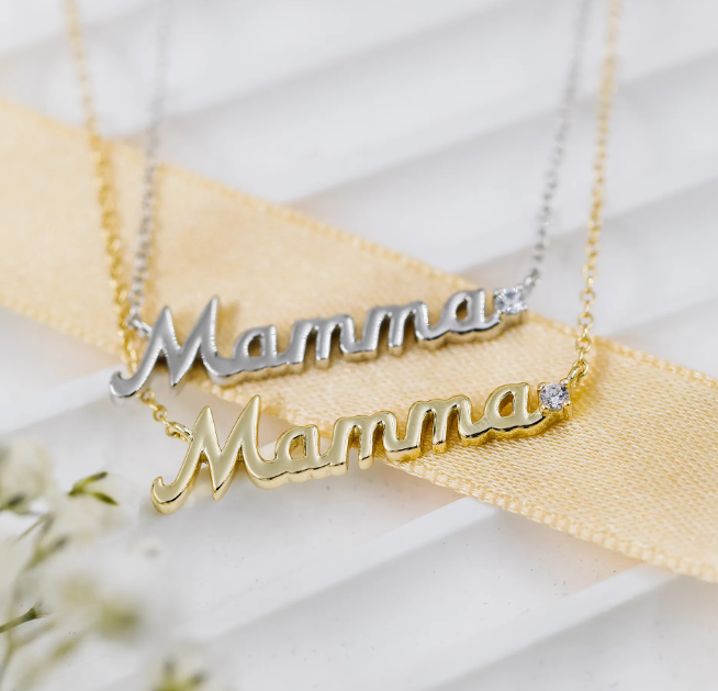 Dette vakre smykket i 925 sølv har teksten «Mamma» og en glitrende zirkonia, som symboliserer kjærlighet og takknemlighet. En meningsfull gave som passer perfekt til morsdag, bursdag, eller som en spontan gest for å vise hvor mye hun betyr.
