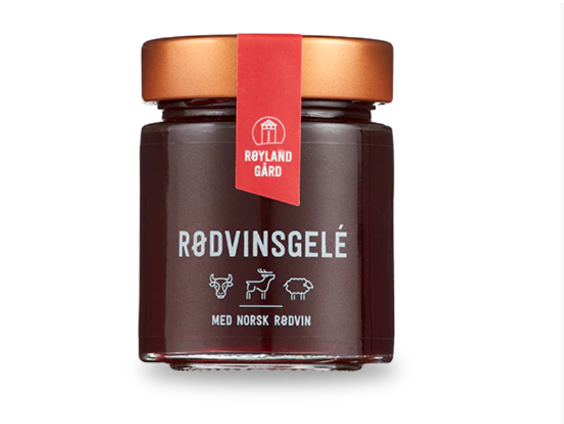 Røylands rødvinsgelé er en fruktig og rund gelé med nydelig smak av rødvin. Den er frisk og velbalansert med en behagelig ettersmak av frukt og bær.