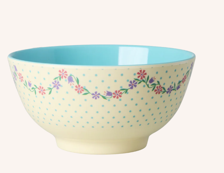 Rice, Melamine bowl with dots and flower print, medium