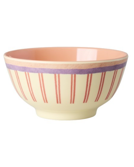 Legg til et hjertevarmt og fargerikt preg på bordet med Rice Melamine Bowl med stripe- og kjærlighetsprint. Denne mellomstore bollen kombinerer et lekent, grafisk design med praktisk funksjonalitet – perfekt for både hverdagsbruk og spesielle anledninger.