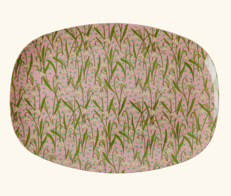 Vår rektangulære melamintallerken i New Snowdrop-mønster. Melamin er slitesterkt og ideelt for daglig bruk takket være sin styrke og enkle rengjøring. Det tar heller ikke opp farge eller smak fra maten – noe som gjør den både praktisk og unik! Vær oppmerksom på at produktet ikke egner seg for mikrobølgeovn.
