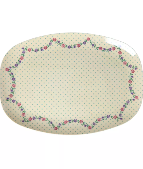 Rice, Melamine rectangular plate with dots and flowers print