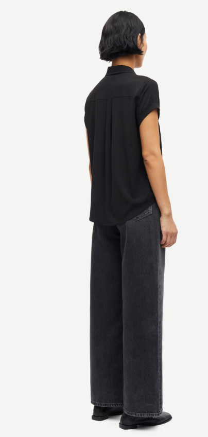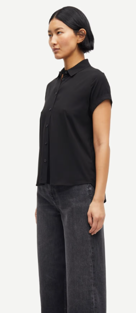 Denne lettvindte skjorteblusen fra Samsøe Samsøe har en avslappet passform og buet fald. Bruk den løs eller puttet nedi buksene, kneppet opp til kragen eller uformelt åpen. Majan har korte ermer med oppbrettet kant. Knappefeste midt foran.