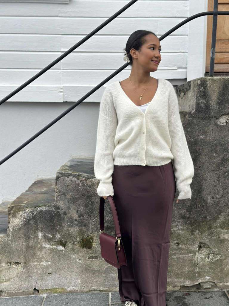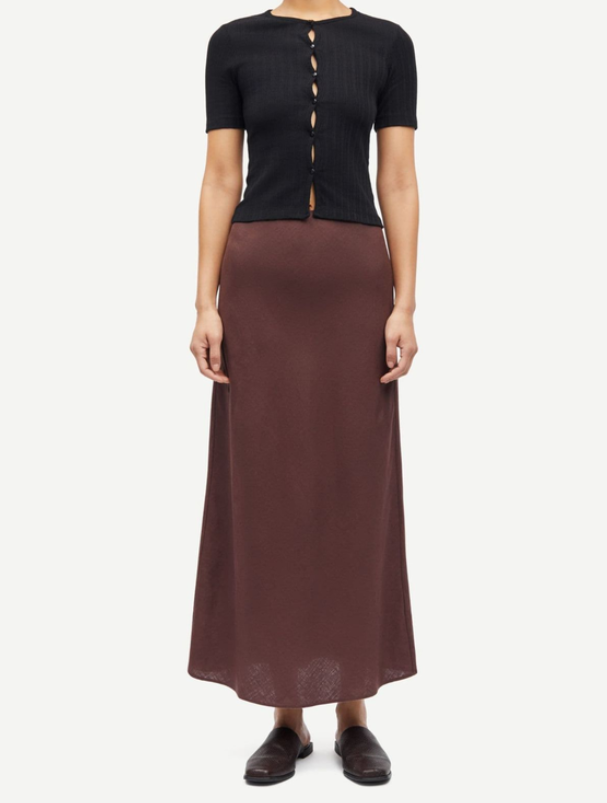 Utforsk elegansen og komforten med dette langskjørtet i fransk røstfarge.