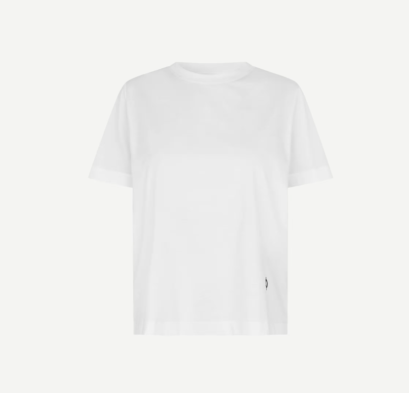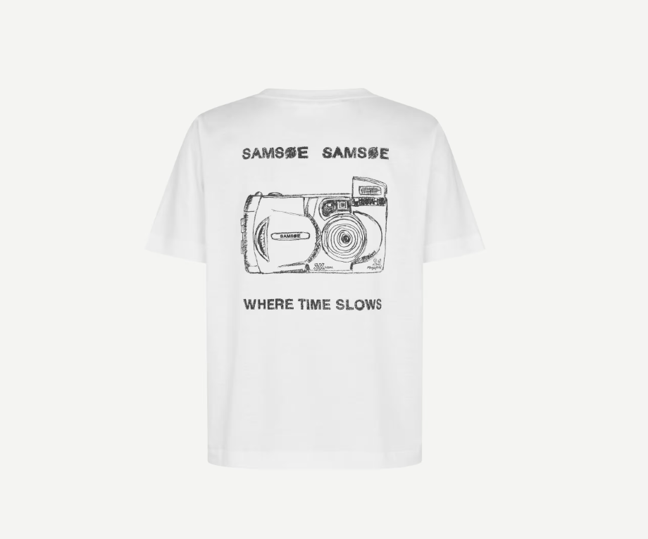 Sacamino SS T-Shirt fra Samsøe Samsøe er en klassisk og allsidig t-skjorte med et tidløst uttrykk. I fargen White Camera får du en ren, hvit base som gir et friskt og moderne inntrykk, enkelt å kombinere med resten av garderoben.