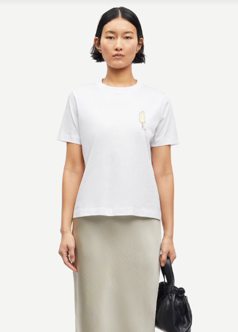 T-skjorte med trykk og korte ermer i vanlig passform. Ribbestrikket rund hals. Laget av 100 % økologisk bomull.