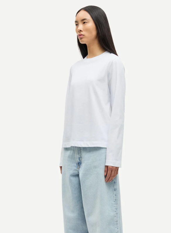 Langermet jersey topp med en komfortabel og vid passform, perfekt for avslappede dager. Laget av 100% økologisk bomull, er denne toppen både myk og bærekraftig. Den er GOTS-sertifisert, noe som sikrer at den oppfyller strenge krav til miljø og sosiale forhold i hele produksjonsprosessen.