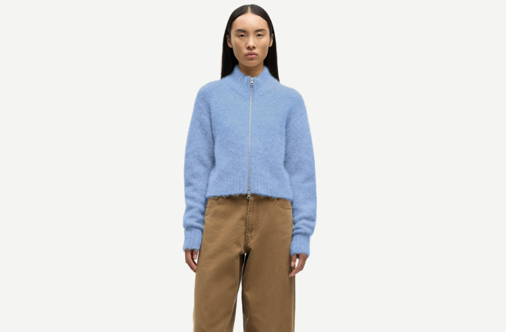 Sajeanne Cardigan i fargen Della Robbia Blue fra Samsøe Samsøe er en vakker og moderne strikket jakke med et eksklusivt uttrykk.