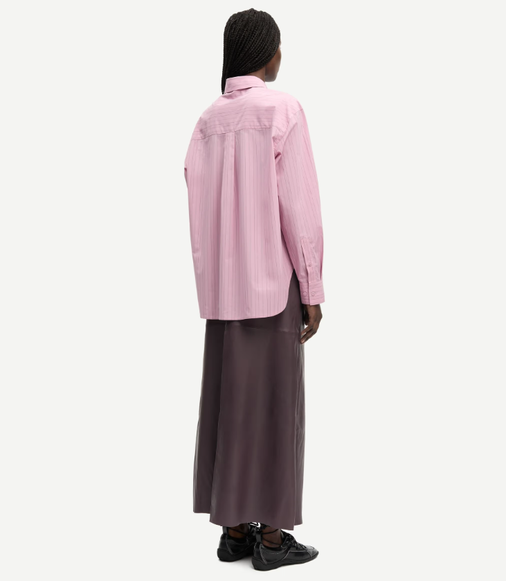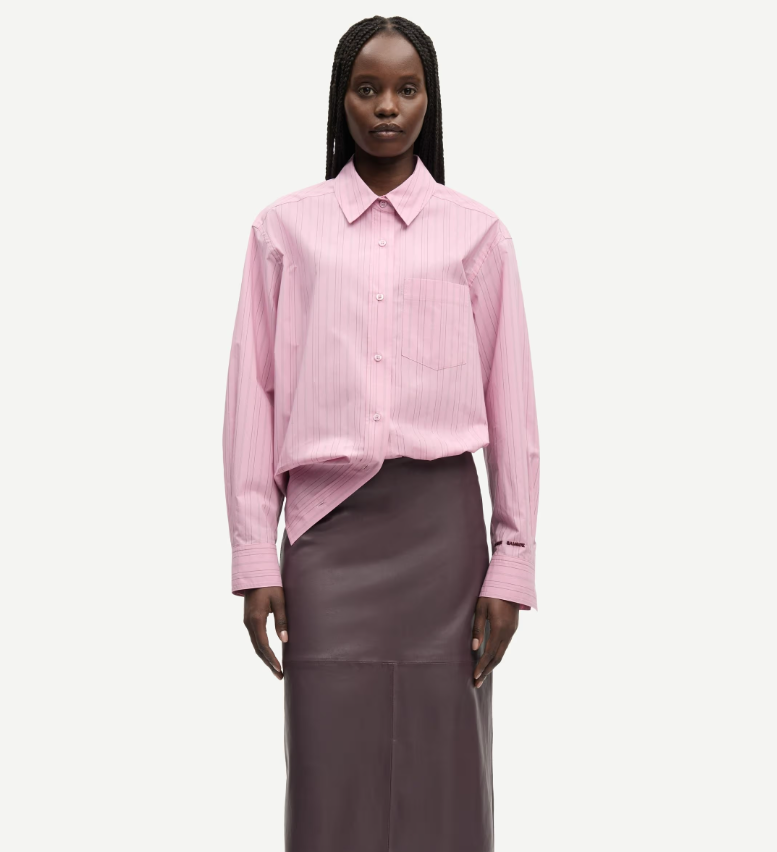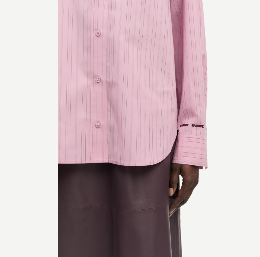 Salova Pocket Shirt fra Samsøe Samsøe er en fresh og tidløs skjorte med et diskret, men elegant stripeprint i Orchid Fudge fargepalett. Med sitt rene design og klassiske skjorteuttrykk kombinerer denne modellen både komfort og stil – et plagg som enkelt løfter hverdagsantrekket.