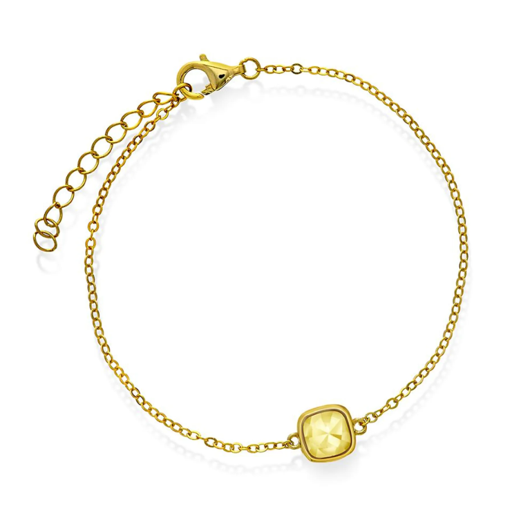 Glede, energi og selvtillit assosieres med edelstenen citrin og dette armbåndet i forgylt sølv skal påminne deg om å feire livet som et liste solskinn å bære med seg. Gjør settet komplett med tilhørende smykke, øredobber og ring.