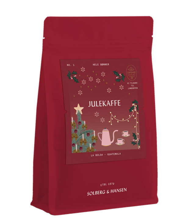 Kaffen kommer fra den familiedrevne gården La Bolsa i Guatemala, en kaffegård som tar føringen når det kommer til sosialt ansvar, miljø og bærekraft, i tillegg til å produsere førsteklasses kaffe. Vi er stolte av samarbeidet og glade for å kunne tilby julekaffe fra La Bolsa for tiende året på rad, som vi støtter med donasjoner fra salget av kaffeposene til ulike prosjekter på gården.