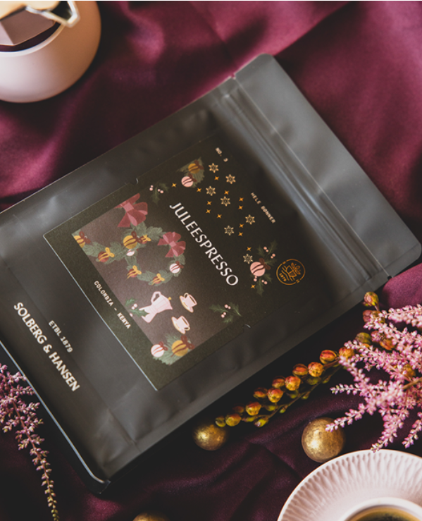 Årets juleespresso er en espressoblanding med våtforedlet kaffe fra Tolima i Colombia og Muranga i Kenya. Juleespressoen smaker nydelig på espressomaskin og mokkakanne, og den kan også brukes på presskanne eller som kokekaffe.