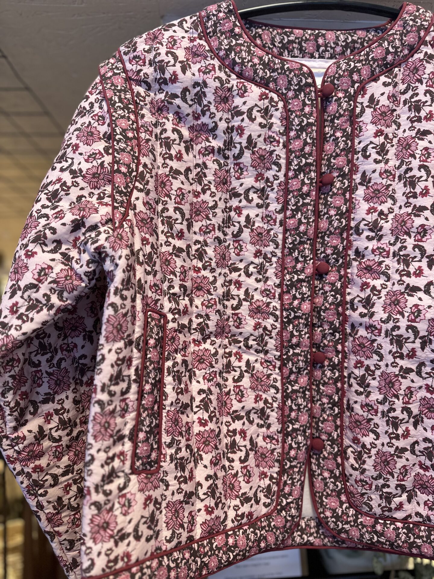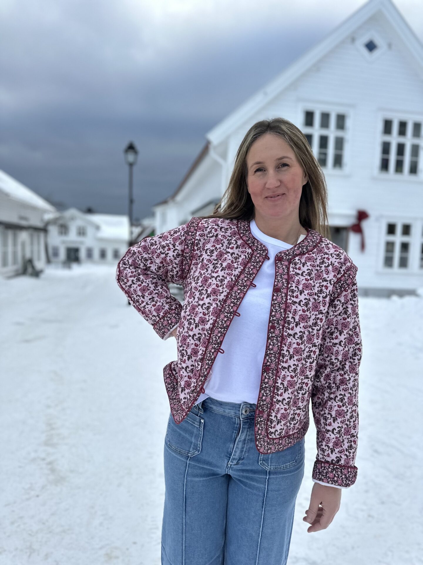 Modellen på bildet har på seg str 36 i jakken.