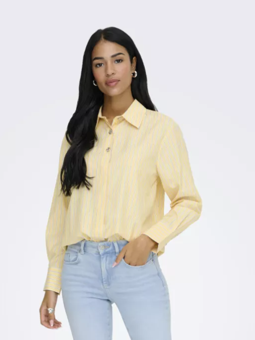 JDY, Nelly L/S loose shirt, White/yellow lemon